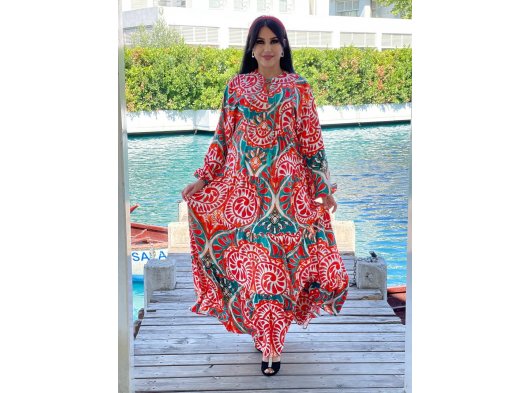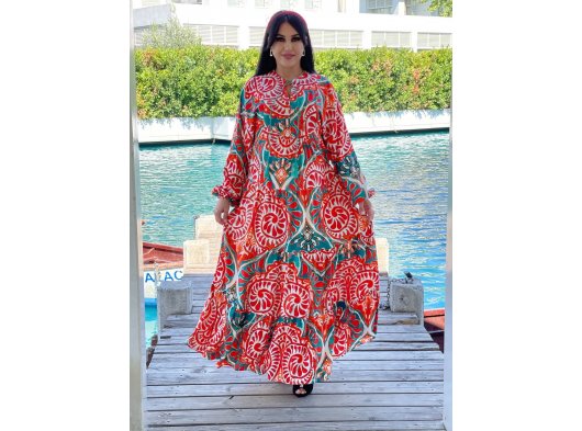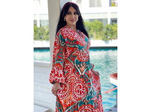 Desenli uzun kollu cepli püsküllü oranj I zümrüt karışık desen el