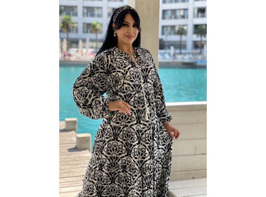 Desenli uzun kollu cepli püsküllü siyah beyaz karışık